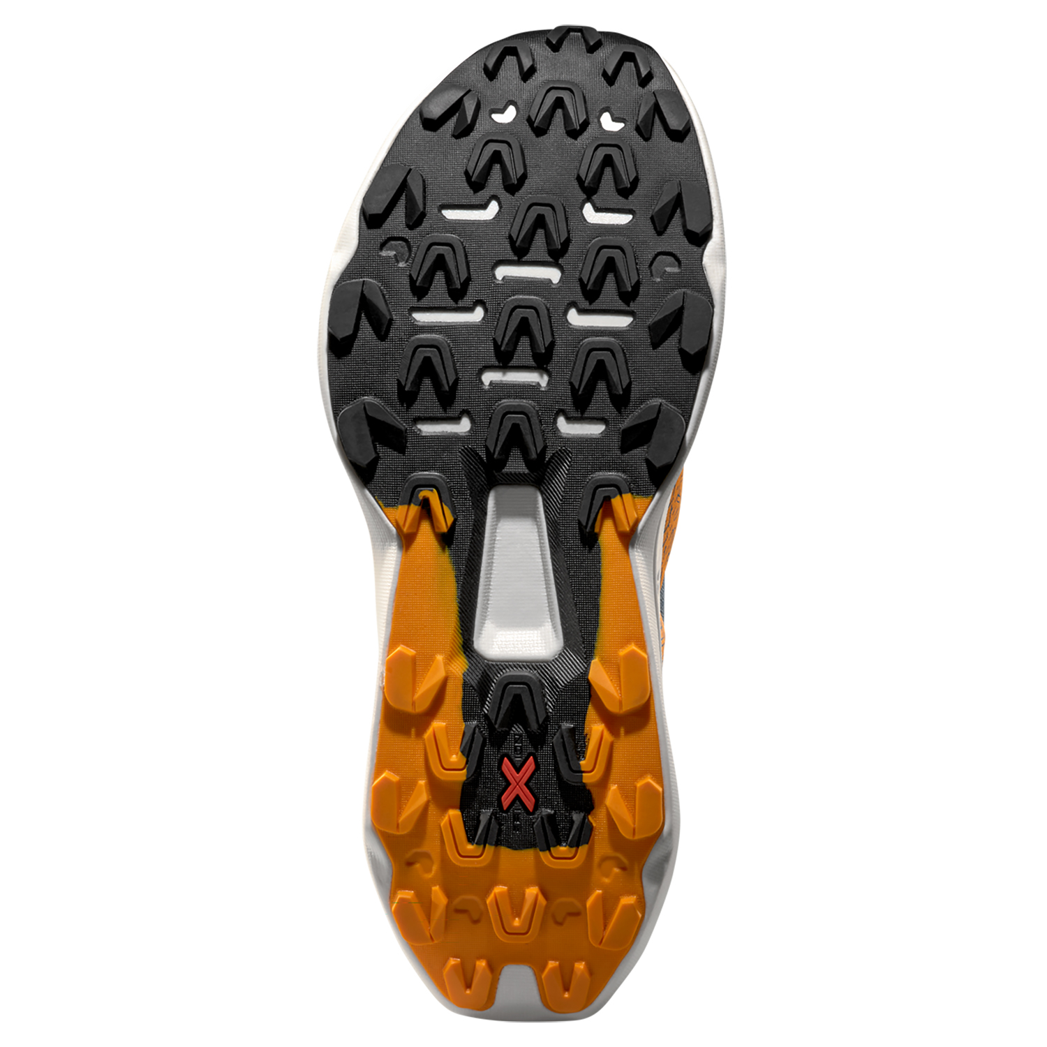 Yttersålen i FriXion® Red med dobbel gummiblanding og 4 mm knotter gir ekstra slitestyrke i hælområdet og maksimalt grep i mellomfot og forfot, slik at du kan takle tekniske partier med trygghet.
