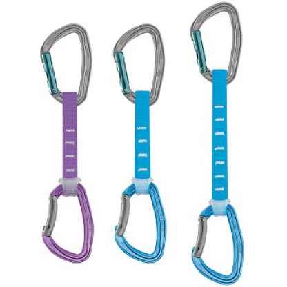 – The carabiners have a wide contact surface with the rope and bolt hanger for better rope glide and increased resistance to wear