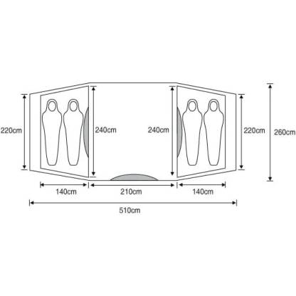 Teltet har to soverom(2+2pers) og innvendig ståhøyde på 190cm.Teltstenger og kanaler har fargekoding for enkel oppmontering.Vanntett duk med 2000mm vannsøyle. Alle sømmer i teltet ær teipet.